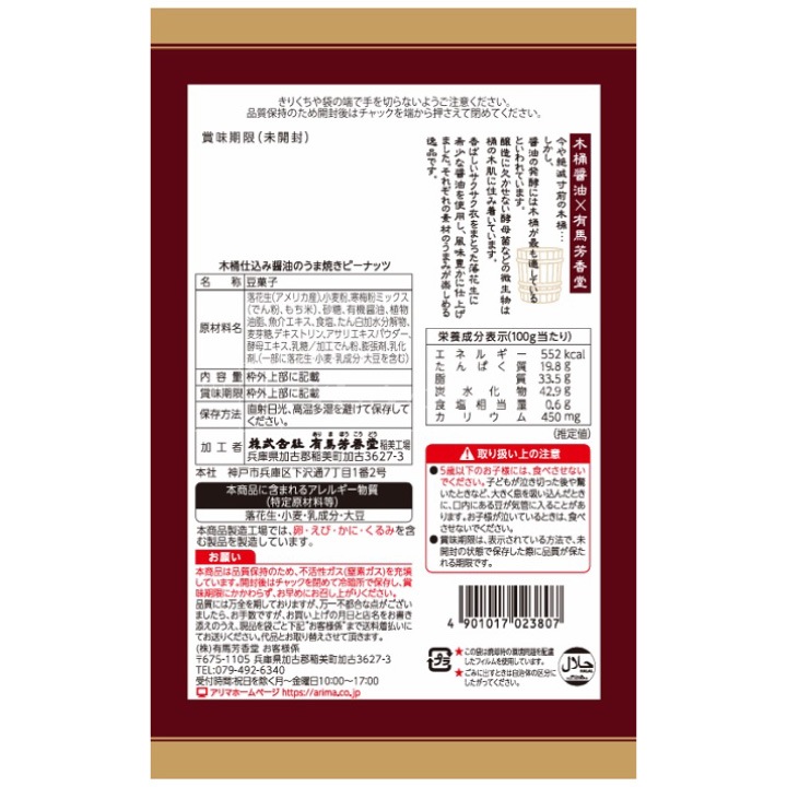 トップ > スナック・おつまみ・ナッツ・ドライフルーツ > 味付 ピーナッツ 木桶 醤油 仕込み うま焼きピーナッツ 85g×6 兵庫 有馬芳香堂 ピーナツ メール便(代引き不可)