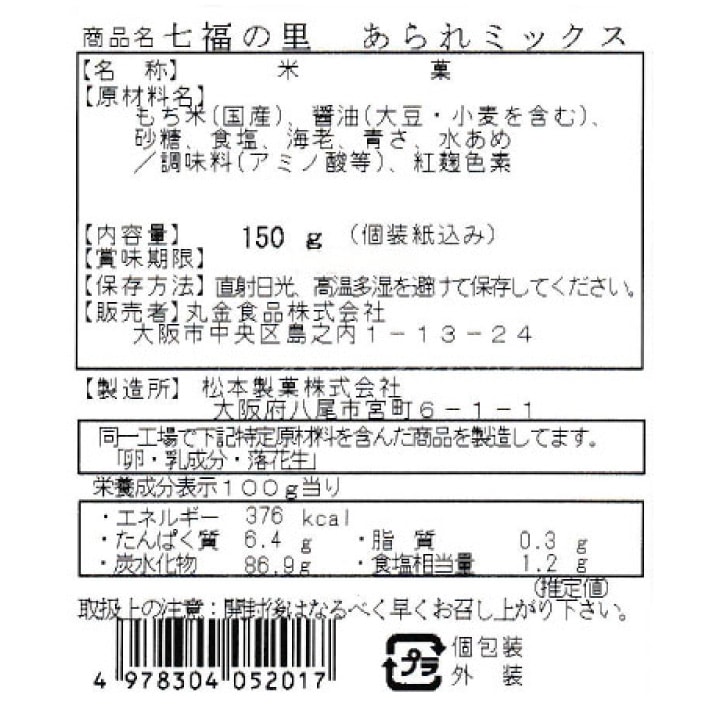 トップ > すべての商品 > 国産 あられ 七福の里 テトラ 個包装 300g 約70個 豆なし 小分け 小袋 招福