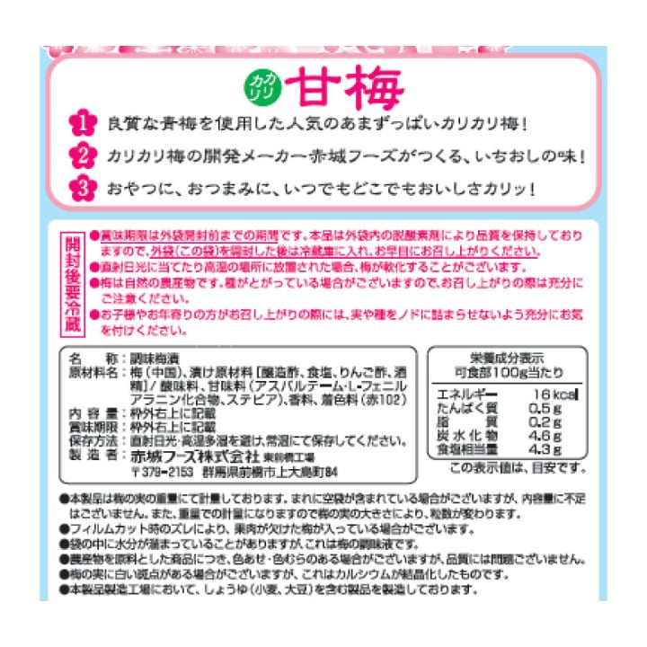 トップ > 食品・その他 > あかぎの カリカリ 甘梅 125g×4(約40粒) 個包装 種あり かりかり梅 赤城