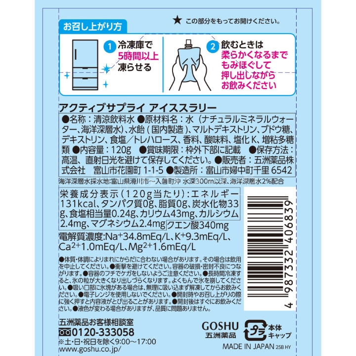 トップ > 食品・その他 > アイススラリー キャップ付き アクティブサプライ グレープフルーツ風味 120g×6個 メール便(代引き不可) 熱中症対策カード付き